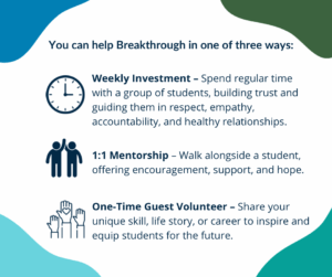 That’s where you come in. We’re looking for volunteers who are willing to invest in the lives of our 5th-8th grade youth in after school support from 3:30-5:30pm. Make an impact and sign up here.